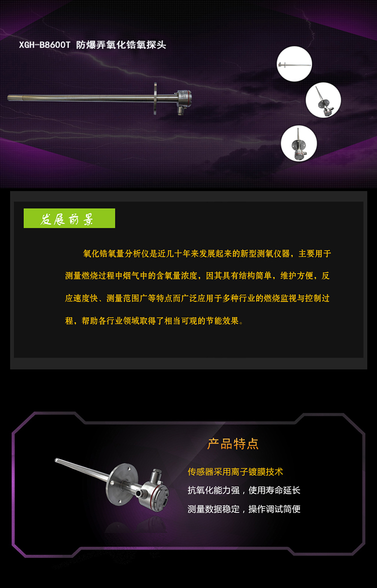 XGH-B8600T防爆型氧化锆氧探头,适用于化工厂,炼油厂等隔爆场合。